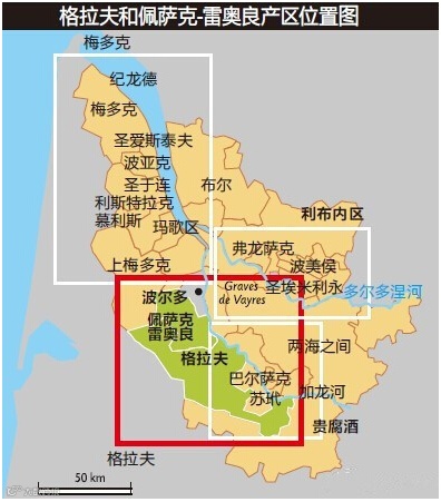 当我们第一眼扫视波尔多左岸地图时,映入眼帘的肯定是波雅克(Pauillac)、圣•朱利安(St Julien)和玛歌(Margaux)等村庄所在的梅多克产区。然而,波尔多左岸地区的优质产区并不只有梅多克。波尔多左岸的格拉夫产区也是一个历史悠久、葡萄种植史可追溯到数个世纪以前的优质产区。