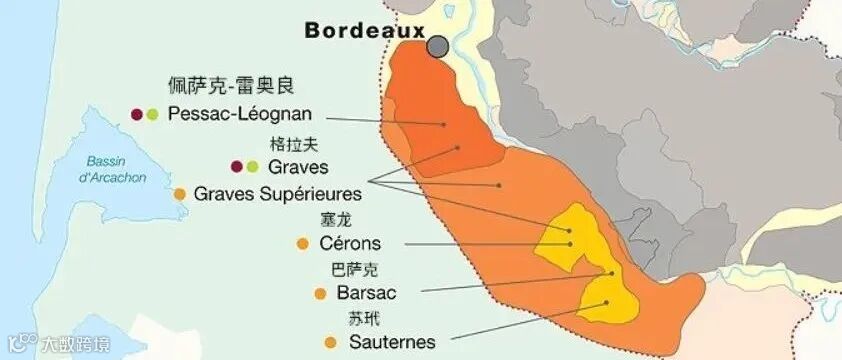 在19世纪末,格拉夫的红葡萄酒便成为了英国皇室的宫廷御酒。格拉夫子产区包括拥有16家格拉夫列级庄的佩萨克-雷奥良产区、与匈牙利的托卡伊和德国莱茵高并称世界三大贵腐酒产区的苏玳产区。