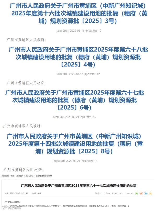 ▲图为部分批次用地批复