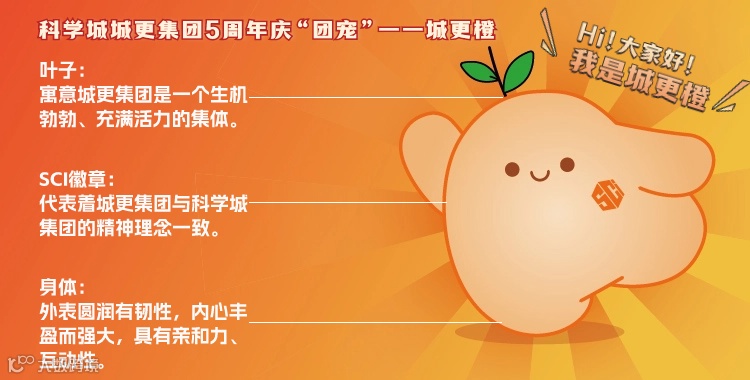 以橙色为主调,象征着活力热情和积极向上的城更精神,传递着自然生态、健康绿色、阳光快乐的理念,是城更集团愿景与使命的缩影,以城市有机更新,守护万家美好。