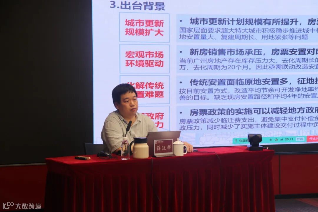 本次培训邀请了广州市城市更新规划设计研究院副总工程师薛汪祥进行授课。薛汪祥首先深入剖析了广州市房票政策的出台背景,从国家战略到广州实践的政策演变过程,再到房票政策对盘活存量资产、优化资源配置的战略意义进行详细讲授,提升参训人员的政策认知水平,加深对政策的认识和理解。随后聚焦房票申领、发放流程及使用规则,逐项分析各关键节点的操作规范,解析房源适用范围、结算机制、流转限制等政策要点,对政府监管平台与企业对接的具体流程及房源核验、资金监管、信用评价等协同机制运行逻辑进行细致讲解。通过典型案例三维还原,深度解析政策执行中易发的套利风险、系统漏洞及法律纠纷,提炼出全流程风险清单与防控预案,有效强化参训人员在实操过程中的风险防控意识。