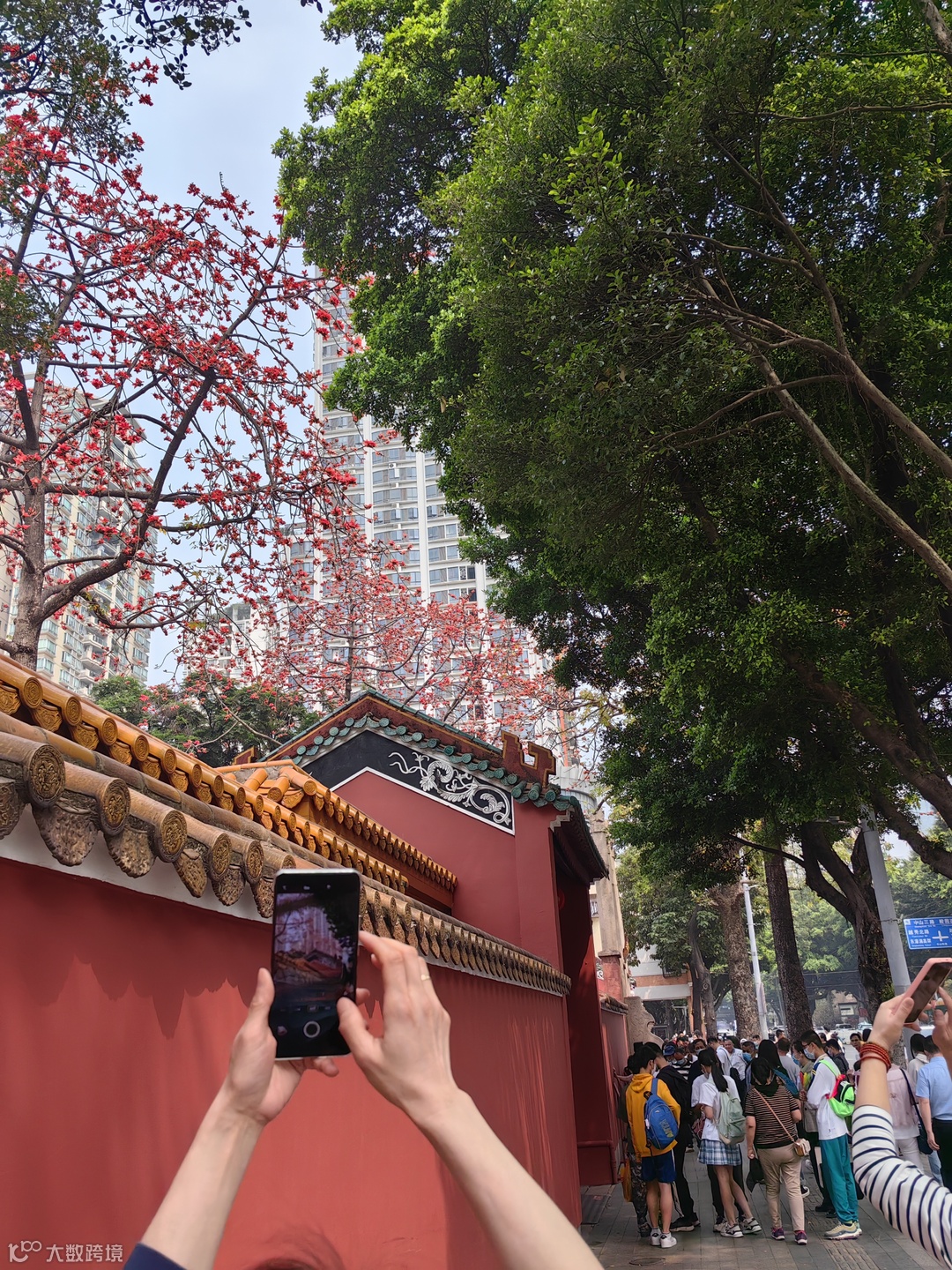 除却川流不息的人群,你是否留意过北京路的颜色:见证变迁的书坊街尽头是绿色的,农讲所与探出墙头的木棉是红色的,熹微阳光下的墙体是黄色的,壮观的大佛寺是深橙透着红光,穿新衣的古树是彩色生出的浓绿。