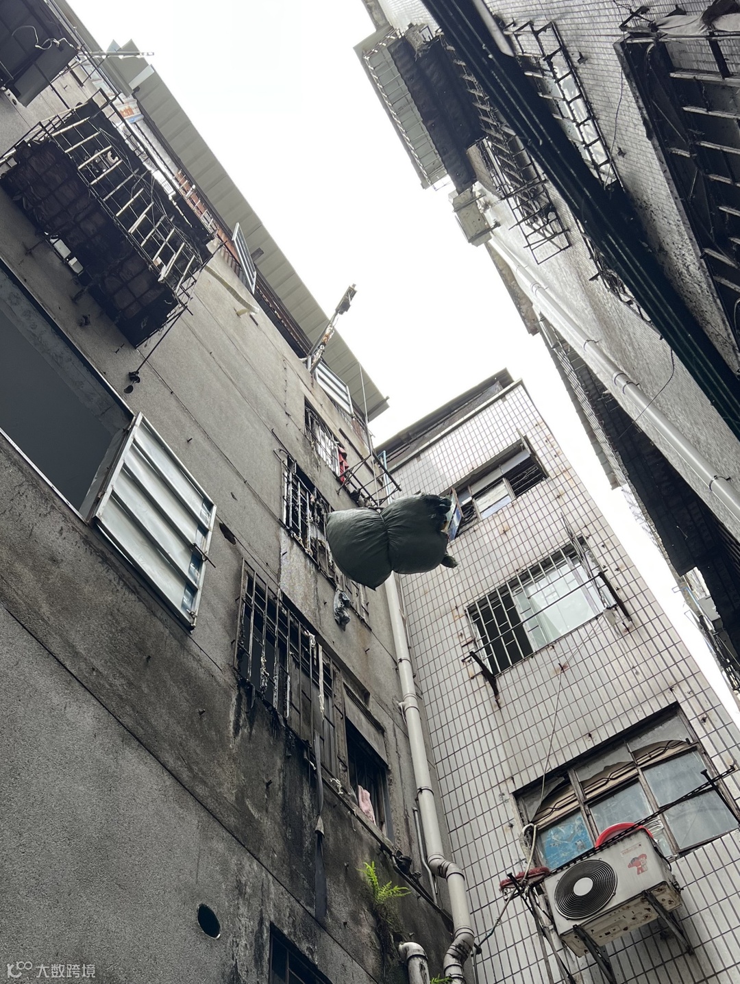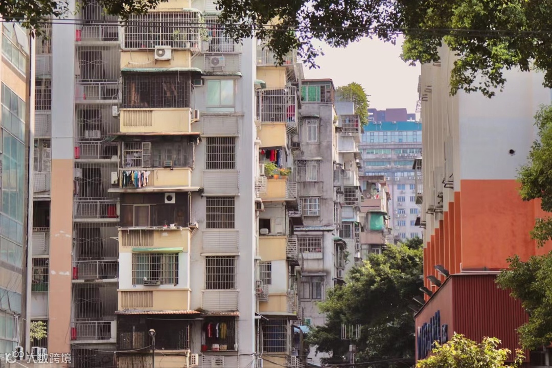 夏茅村中的建筑密密麻麻紧紧地挨在一起,走在巷子里难分昼夜,向天望去,楼房的夹缝中挤进一线阳光。
