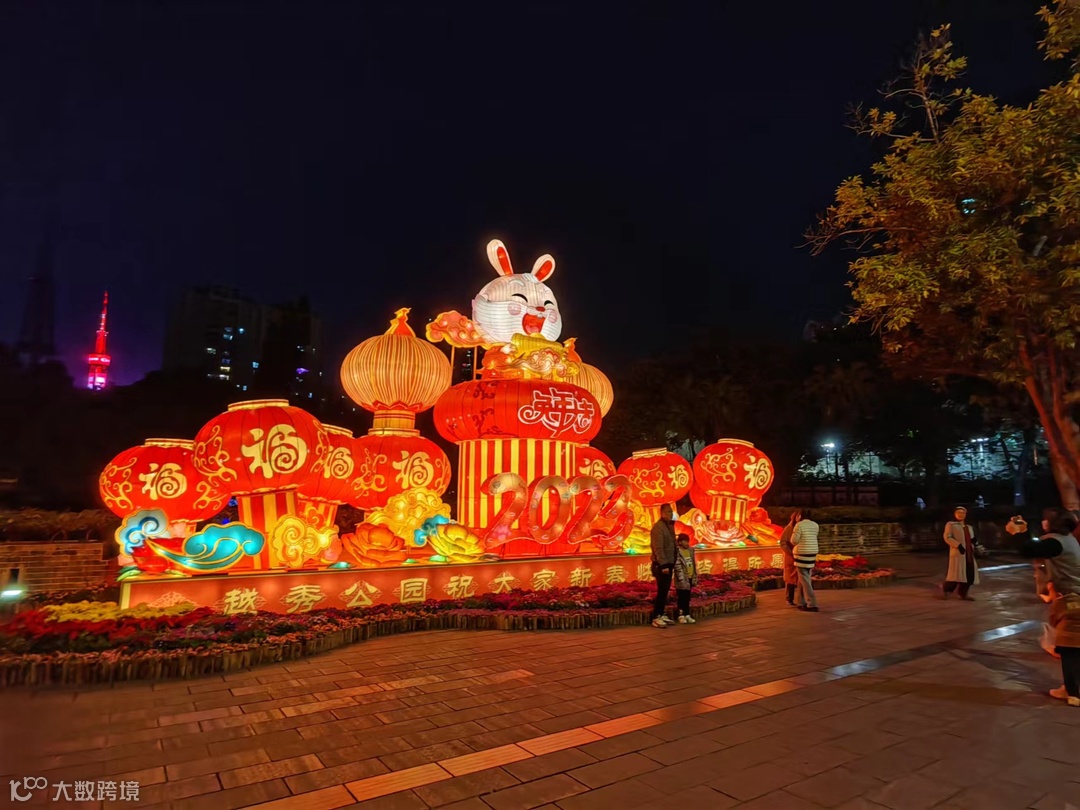越秀公园延续春节赏花灯的传统习俗,张灯结彩,流光璀璨,各具特色的迎春花灯美轮美奂、年味十足。