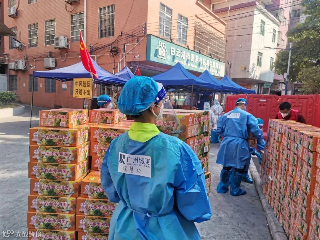“95后”的慧仪虽然年轻,但已是多次支援抗疫的“抗疫老兵”。在支援白云区夏茅村第四网格期间,冯慧仪担任物资配送组长,扛起了网格居民的物资保障重任。为打通从村委门口到群众家门口物资配送的“最后100米”,冯慧仪每天早上八点就到岗,带领组员们分拣物资,按照名单逐一分发到户。配送生活物资是体力活,身穿着“大白”她每天奔走在6层楼高的居民楼,一趟下来浑身上下被汗水湿透,但她顾不上休息,也顾不上喝水,只想快一点,再快一点把生活物资送到居民的手中,让封控在家的居民能够多一份安心。