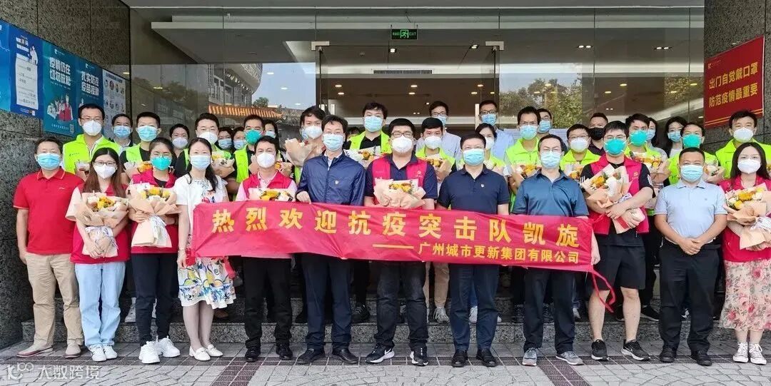 去时携秋风,归来已冬凉。11月20日上午,广州城更驰援白云抗疫突击队转战两地,坚持33天后,终于圆满完成抗疫任务,胜利凯旋!公司党总支书记、董事长答恒诚带领班子成员、各部室及子公司负责人在蓝宝石大厦广场为平安凯旋的突击队员举行热烈的欢迎仪式。
