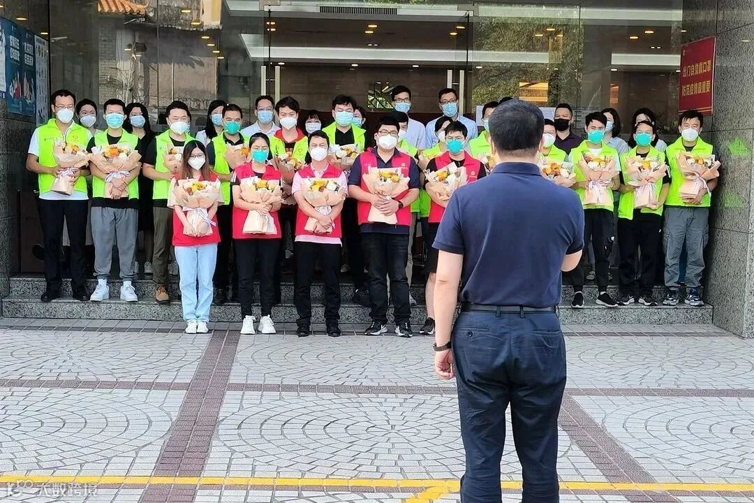 欢迎仪式上,答恒诚代表党总支、公司领导班子对突击队员们月余来不怕苦累,敢于斗争、无私奉献的精神致以崇高的敬意和衷心的感谢。他指出,广州城更驰援白云抗疫勇士们闻令而动,星夜驰援,持续作战,不惧艰险,用无私奉献的精神圆满完成疫情防控各项支援任务,用不计得失的坚守助力广州早日战胜疫情,以实际行动展现国企的“硬核力量”、彰显城更人的政治担当!希望大家以更加昂扬的斗志投入到工作中去,在各自岗位上再展风采,再立新功。