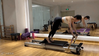 普拉提的动作大多是动态的,分为器械训练和垫上训练,有辅助性小工具配合,如普拉提圈,普拉提球等。