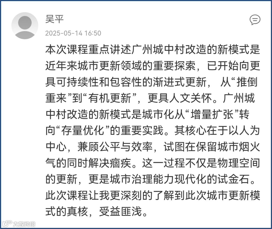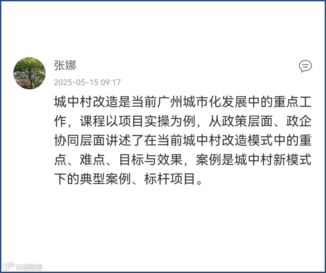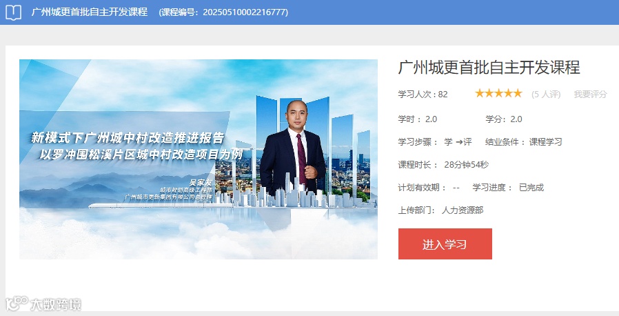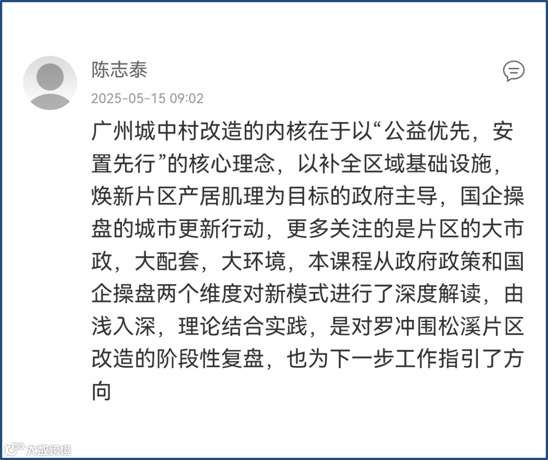 本次上线的课程聚焦公司核心业务、重点项目,通过“政策权威解读+实战案例剖析”,深度挖掘公司在城市更新领域的先发优势,系统呈现了“城市更新政策”“城中村改造模式”“松溪片区城中村改造案例实践”等核心知识,是公司独立开发制作课程、建立内部知识萃取机制的一次有效尝试,标志着公司智库建设迈出关键一步。