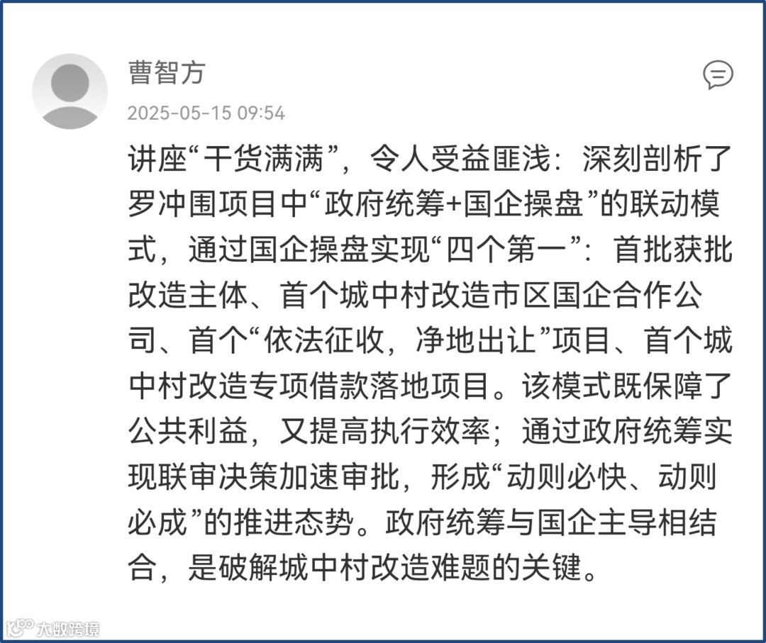 一是聚焦政策解析,邀请外部行业专家深度讲解《广州市城中村改造新模式新政策解读》,从宏观政策演变到微观实操细则,系统梳理广州城中村改造的制度创新路径。