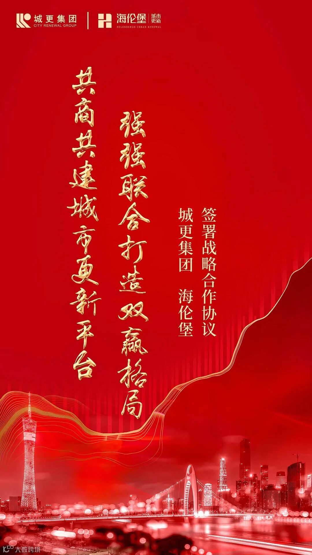 5月27日,广州城市更新集团有限公司(下称“广州城更集团”)与广东海伦堡投资发展集团有限公司(下称“海伦堡城更集团”)在广州市番禺区海伦堡创意产业园举行战略合作协议签约仪式。广州城更集团董事长答恒诚、常务副总经理周星星、副总经理蔡志新,海伦堡城更集团副总裁吕江涛、产业研究院院长梁雄文、华南事业部副总裁陈晨曦、广州城市公司总经理季善禄等领导出席并见证签约仪式。