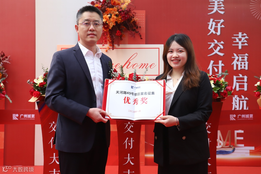 广州城更董事长张研为本项目案名征集活动的优秀奖获得者颁发奖状。