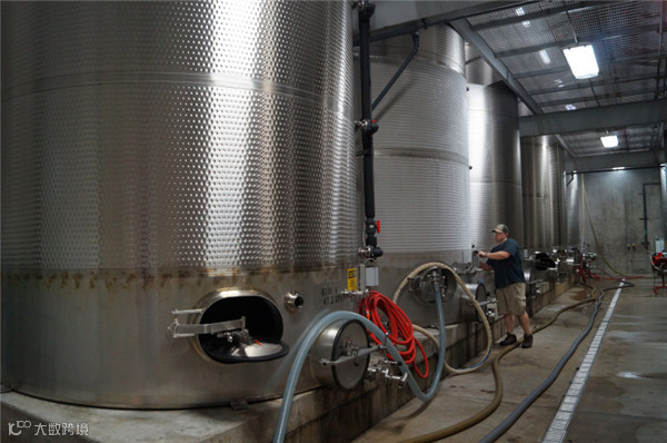 对于白葡萄来说,破皮完成后,葡萄就会被送入压榨机榨成葡萄汁,然后会被泵入大池子中,并在这里进行澄清与分离。在大池中,葡萄皮和葡萄籽等会自然沉入池底,在进行发酵前须将这些沉淀与葡萄汁分离。