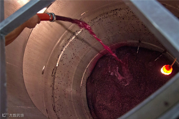 2. 在红葡萄酒的酿造中,由于发酵过程会释放出大量的二氧化碳,因此葡萄皮等会被推到葡萄液的上层,所以为了萃取到葡萄皮中的色素和单宁,酿酒师们需要采用淋皮或压帽的手段将浮上来的葡萄皮浸入葡萄液中,而且这个工序需要一天进行数次。