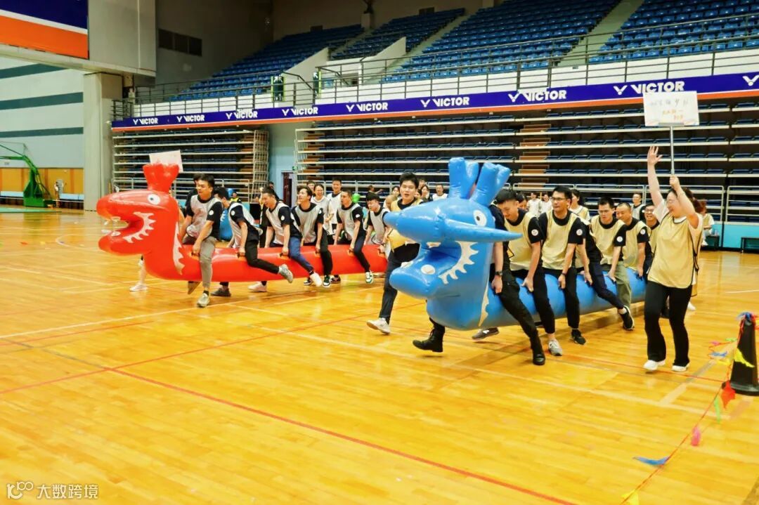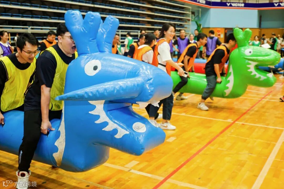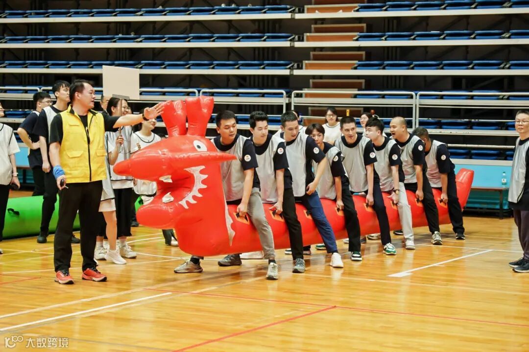 在“猛龙奋进”环节,队员们紧抓龙身,齐心协力,脚踏节奏,在“一二一”的呐喊中驾驭巨龙破浪前行,将“勇争第一”的气势化作速度与激情。寓意着只要人人拿出勇于争先的劲头,集团必将在“百舸争流”的局面中拔得头筹,形成锐进不息的发展之势。
