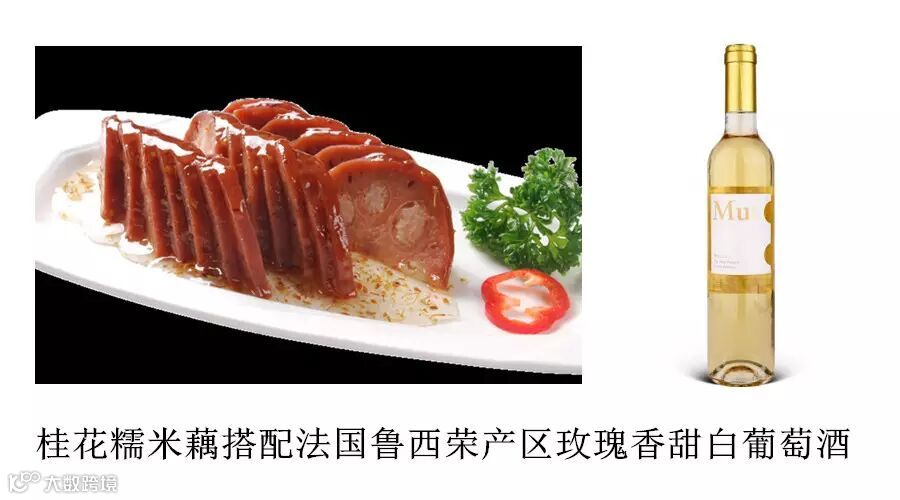 又名蜜汁糯米藕,以其香甜、清脆、桂花香气浓郁而享有口碑。这款法法国鲁西荣产区AOC玫瑰香甜白利口葡萄酒,酒体呈金黄色,从颜色上与桂花糯米藕相得益彰。浓郁的果味与菜品的桂香香气交相辉映,令人心醉,而足够的酸度使得这道甜品甜而不腻。