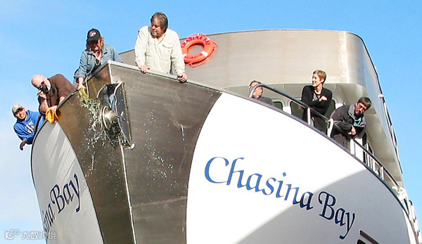 国外在举行新海轮下水典礼时,都要由船主(或其代表)的夫人将一瓶香槟酒掷在船首击碎,名为“掷瓶礼”。
