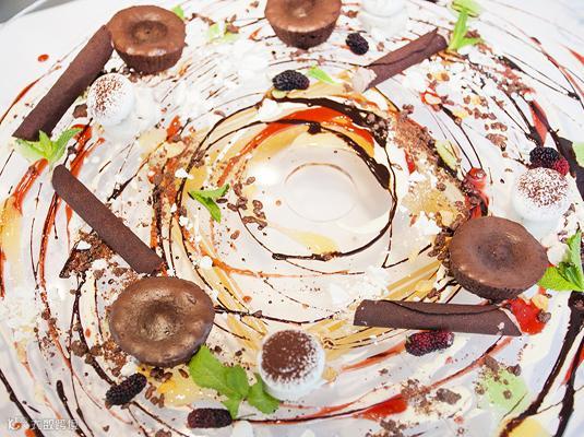 这道甜品以体现“星空”概念的艺术形式不得不说疯狂而又有趣,其美味也同样令人惊艳。盛放于大玻璃板之上,厨师在你的面前对这道料理开始进行绘制,在星空的漩涡中逐步加入了草莓、橘子、巧克力、香草及一系列丰富多彩的酱汁。搭配装饰清新的薄荷叶、玉米片及米饼,让人望而生叹这道艺术品甜点的诞生!