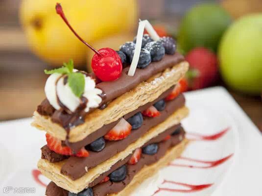 芒果榴莲拿破仑,巧克力和奶油融合在一起,层层递进的香浓和醇厚的味道,再加上这脆香酥皮,现在回想起都是要流口水的,简直就是完美组合!以前吃过的巧克力甜品在它面前都是浮云啦!