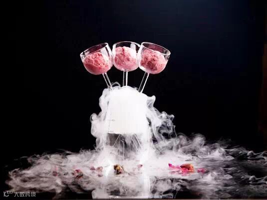 当科学遇上美食,好看好吃的食物跃然桌上。厨房像是一个魔幻般的实验室,做冰激凌的机器很特别。他家的冰激凌完全是现场制作的,所以不含有一点防腐剂,据说所有的食品只要你想的到的都可以做成冰激凌,端上桌子的冰激凌烟雾缭绕,宛如仙境。