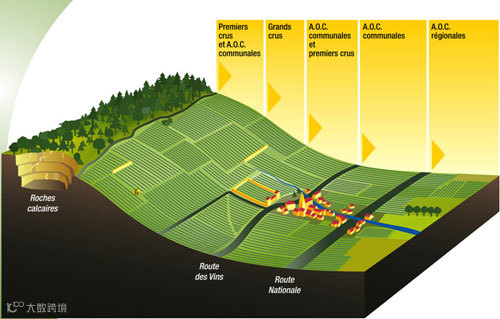 据阿伦讲,许多等级较高的葡萄园,都拥有一块倾斜具有坡度的种植地,这样的土地排水能力更强,同时能接受到更多的阳光照射,从而导致生长的葡萄果实风味更加浓郁。