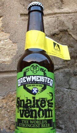 获得这个名号的酿酒厂似乎每年都在变。这场战役从1999年由山姆亚当斯的乌托邦utopia开始,这款酒的酒精度是21度。去年,最烈啤酒的称号由苏格兰brewmeister啤酒厂的末日毁灭夺得,酒精度为65度。目前,他们又宣布出品的了名叫蛇毒snake venom的啤酒,酒精度高达67.5度,其标准酒精度为135, 比很多烈酒的度数都要高。一瓶要80美金。而且每瓶上面都有标签提醒你不要喝太多。