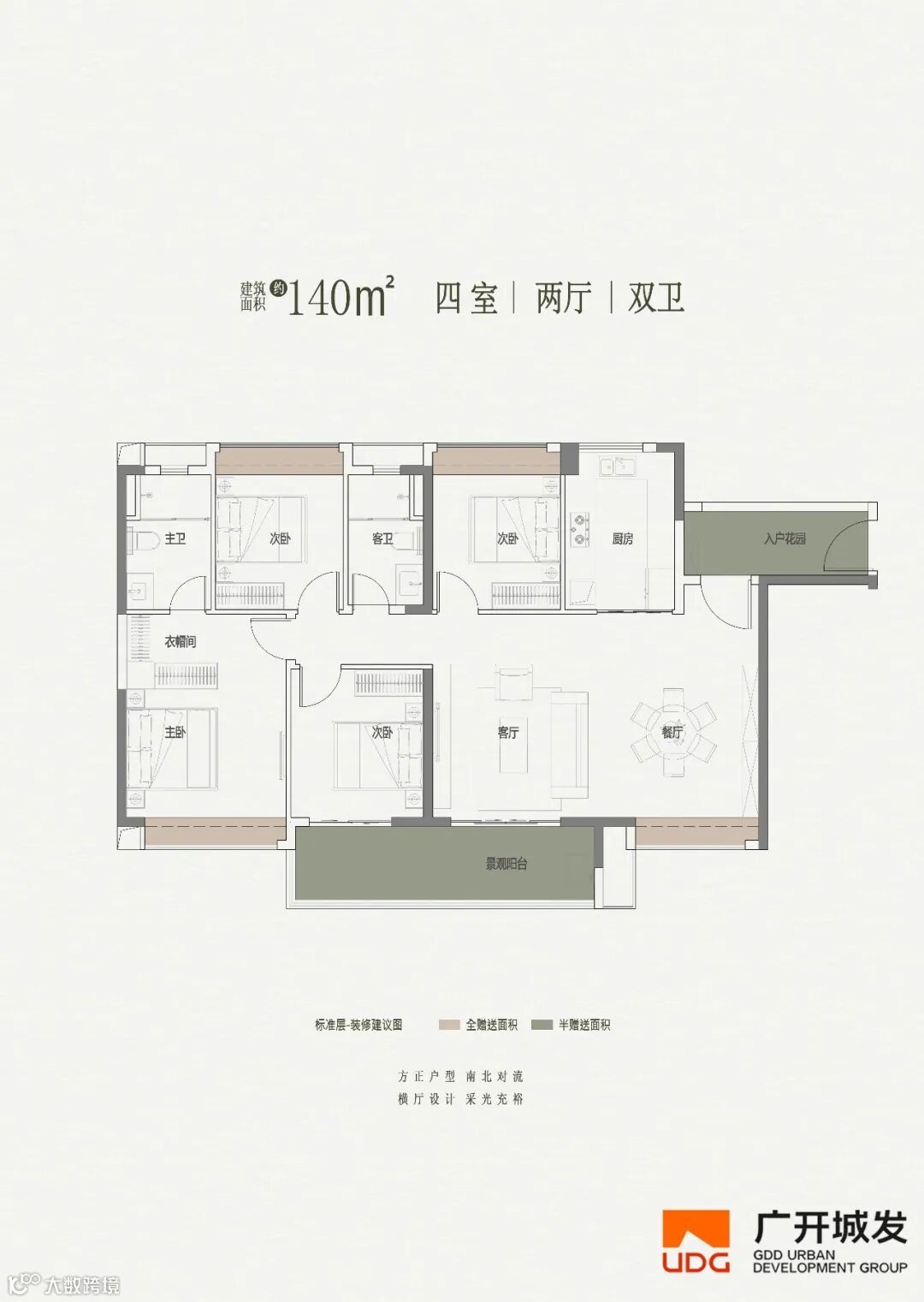 140㎡四室两厅两卫,改善型家庭的品质之选:整体格局舒展有序,入户花园的设置增添归家仪式感的同时,也可作为储物、休闲的弹性空间。