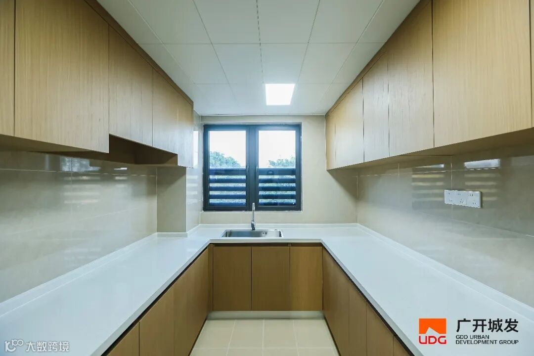 厨房配备吊柜、人造石台面与生态板材橱柜,耐磨抗污易清洁;