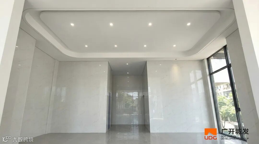 1.精雕细节质感,匹配生活格调。归家大堂以“简约雅致”为设计理念,使用面积约40㎡,大堂吊顶高度4.3M,配合外侧延续的5.5M层高的架空层空间,为村民营造大气通透,品质与舒适度并存的第一归家界面。