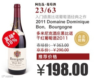 2011年份多米尼克酒庄黑比诺干红[阿伦选·葡萄酒京东商城售价为198元],是一款入门级的勃艮第葡萄酒,香气和风味都极佳。