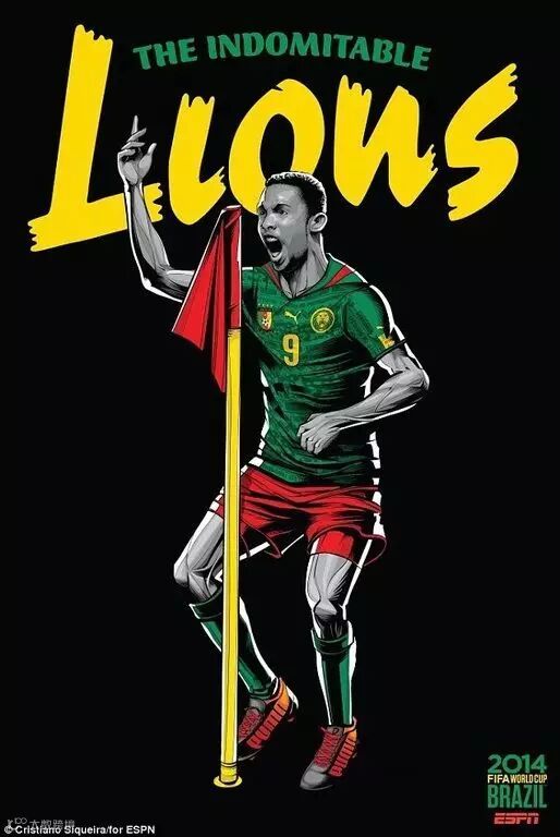 喀麦隆的海报中,切尔西前锋老将埃托奥正在围绕角旗跳舞庆祝,非洲足球总是会给世界带来惊喜,不管你信不信,反正我信了。
