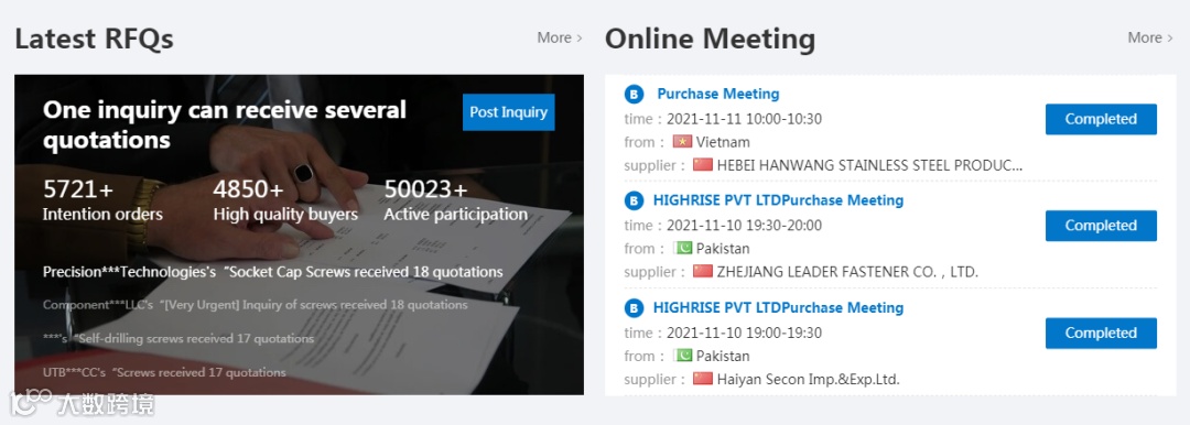 1v1匹配会是华人螺丝网通过构建参展商和采购商的“自画像”,细分产品精准搜索,供需精准智能匹配,方便国内外买家能更快速、精准找到优质的供应商的促单手段;通过买卖双方商机识别,智能匹配,参展商与采购商以在线视频的方式进行实时交流与互动,实现足不出户线上谈单。