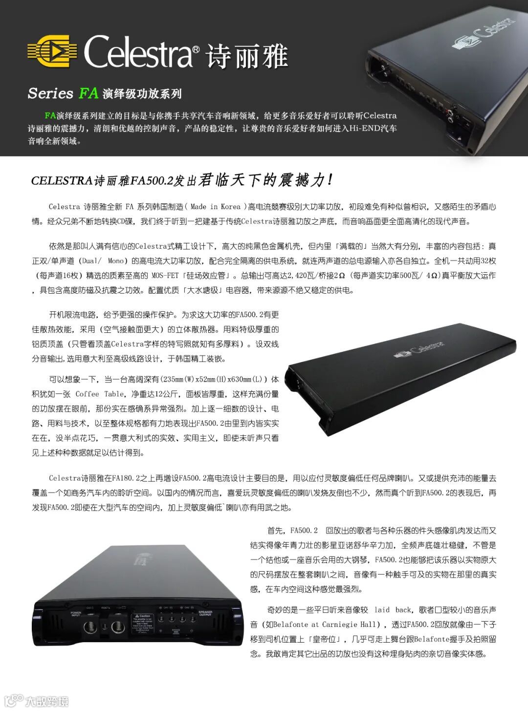 弦声汽车音响(B&B Auto Work Ltd)店主BEN哥多年玩汽车HiFi心得靓声与否,大原则是以喇叭为核心,了解其声音个性后,因应其美中不足之处,选择适合的超级功放,务求在结合喇叭后在声音上做到取长补短,把原先发觉喇叭表现欠佳的地方改善至完全满意,这样超强升级才有意思。正所谓(知己知彼,百战百胜),否则只会浪费金钱/时间,而未能买得到或玩得出超级靓声的效果。假如你觉得现用喇叭现时的声音在中音至低音段较薄,人声听起来较瘦削,歌唱来较冷及欠缺感情,高音又去唔尽,细节含糊不清,音场狭窄,像缩在左右喇叭之间,无论播那一种音乐都觉得很淡薄,无味道,而阁下又喜欢听较抒情的音乐,喜欢那种叹世界式的听音乐享受,讨厌大锣大鼓的嘈吵音乐,喇叭的效率很低,稍为大声唱已瓜瓜嘈的话,消费在十万元左右不成问题的话,店主BEN哥诚意向你大力推荐Silence.lab诗丽娜喇叭+Celestra诗丽雅汽车音响Hi-END组合.先说Celestra诗丽雅RA275x三台功放每台输出高达75瓦x2,但不论大声或细声听,声音也半点不粗,虽然是A/B类功放,更是意大利精工制造,但声音却丝毫没有半点冷硬感或淡而无味。用手触摸唱了大半天的RA275x之机顶及机身,但其温度适中。事实上,凭我多年接触过不少高价Hi-END A/B类功放的经验,我听到的RA275x,除了大声回放(Dynamic Piano)及(敲击卡门)等动态范围吓人的发烧录音外,我觉得大部份时间我听到的声感,不仅悦耳迷人,而且能松弛听者的神经,稳定及流畅。其与别不同之处,是高音出奇地通透清晰,弱音细节清楚,可说是一种亮度足的高频,没有半点暗淡或过于光辉,使人目炫的感觉。每种乐器发出的声音清楚而没半点含糊,不论男声或女声,歌声总是充满感情和丰富温暖的血肉感,使人听出耳油。Silence.lab诗丽娜Hi-END汽车喇叭(Madein Italy)的本领帮助我们细心了解从前没有留意或不知道的某些音响真像,同时间亦一再向我发出明确启示:(简单直接的汽车音响超强组合),于争取音乐精髓方面总是较为容易的。这个当然,在大地方,大型回放系统中,意大利精工制造的Celestra诗丽雅 RA275x(Made in Italy)功放,绝对可以驾驭龎大的空气量,产生足够的音压,稳定的舞台感及条理性,这几乎纯粹是力的表现,此外便再无其它了。 总的来说,是一套能令严谨的汽车音响/音乐迷衷心欣赏的杰出的超强组合,我不妒忌它专为这台丰田RAIZE精工设计,反之因应其杰出表现,另我更加体会听音乐的乐趣。这套Hi-END汽车音响组合全频开阔,声音异常连贯流畅,音质平滑幼细,一尘不染,质感半分不觉粗糙,就此音乐听来生动,音凖佳,而且具备真正Hi END汽车音响的贵气与气派。我全力推荐。应车主要求BEN哥在汽车顶蓬精心设计的星空天幕(俗称:满天星), 效果之流丽叫人拍案称好,音乐不断作出的和谐配合是百份百天衣无缝, 保证任何乐迷和发烧友都会一听喜欢,继而迷恋. 信乎?