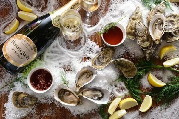 由于足够的酸度,以及充满气泡的清爽口感,无论是小清新蒸鳕鱼,还是油滋滋的酱大肘子,或者甜腻腻的提拉米苏,甚至是火辣的四川老妈兔头,用香槟来搭配都很完美。鱼类和海鲜尤其是龙虾,都是香槟的最佳拍档。熏制的大马哈鱼搭配的效果是出奇的好,其他的如熏鳟鱼、红鲷鱼、鲈鱼、蛤、生蚝等味道偏咸的菜肴都能与香槟搭配得精妙绝佳。