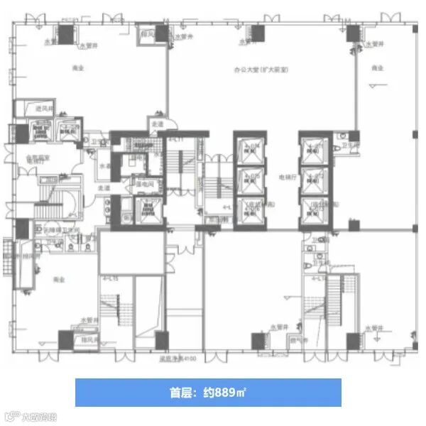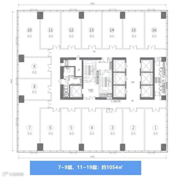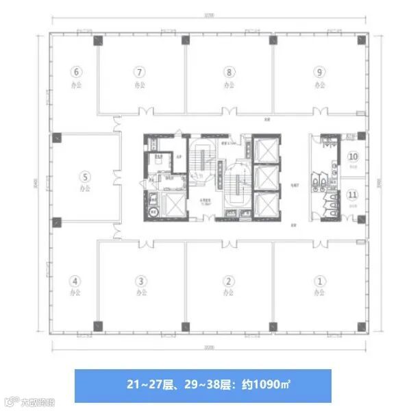 约889㎡(1层) 约1448㎡(3层) 约1033㎡(4-6层) 约1054㎡(7~9层、 11~19层) 约1090㎡(21~27层、29~38层) |
