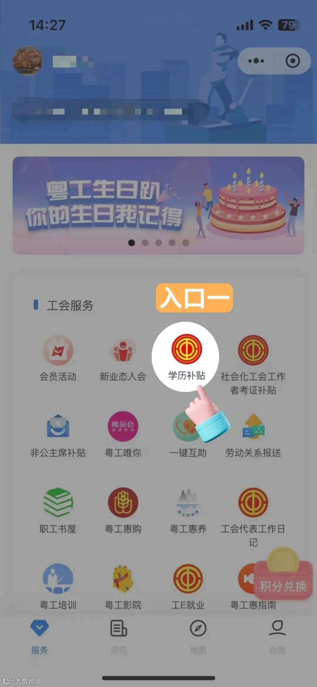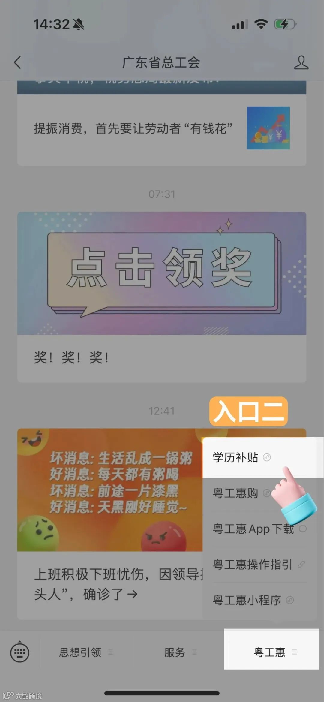 10 月 28 日至 11 月 7 日期间,符合条件的一线职工,使用本人实名认证微信,通过粤工惠平台、「广东省总工会」官方微信公众号进入「学历补贴」服务。