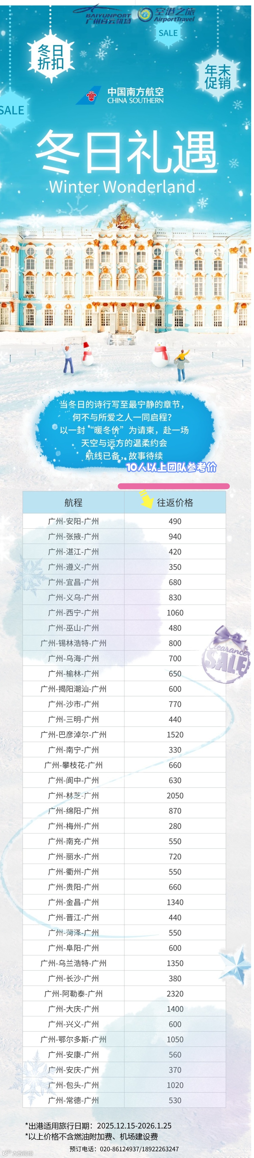 各位同事:岁末将至,正是犒赏自己、奔赴远方的好时节!空港之旅联合南航及合作单位,为您定制「南航冬日礼遇团队机票」+「贵州兴义疗休养套餐」双重福利,用“暖冬价”开启一场云端与山水的浪漫邂逅!