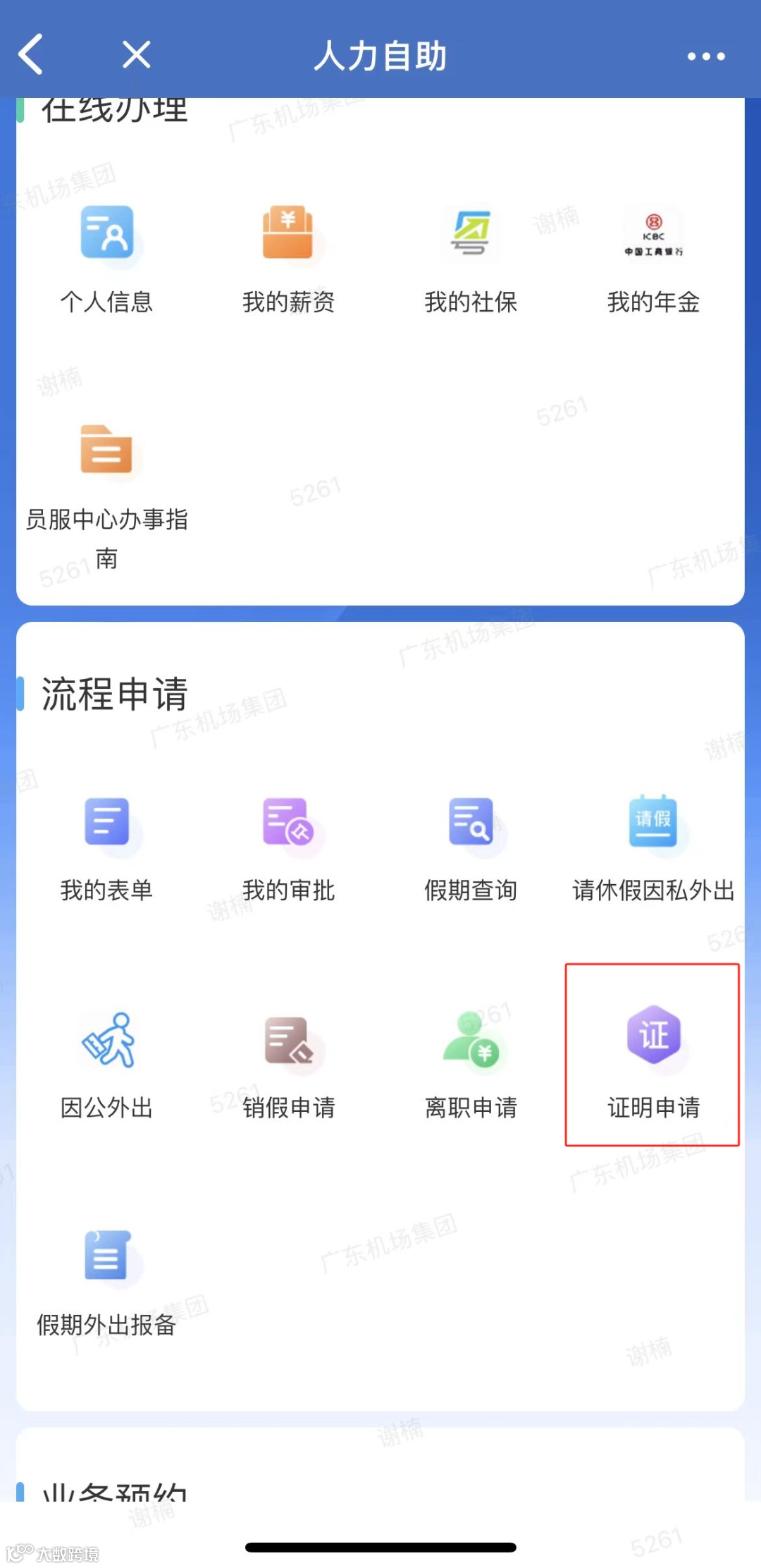 员工服务中心自助开具个人证明