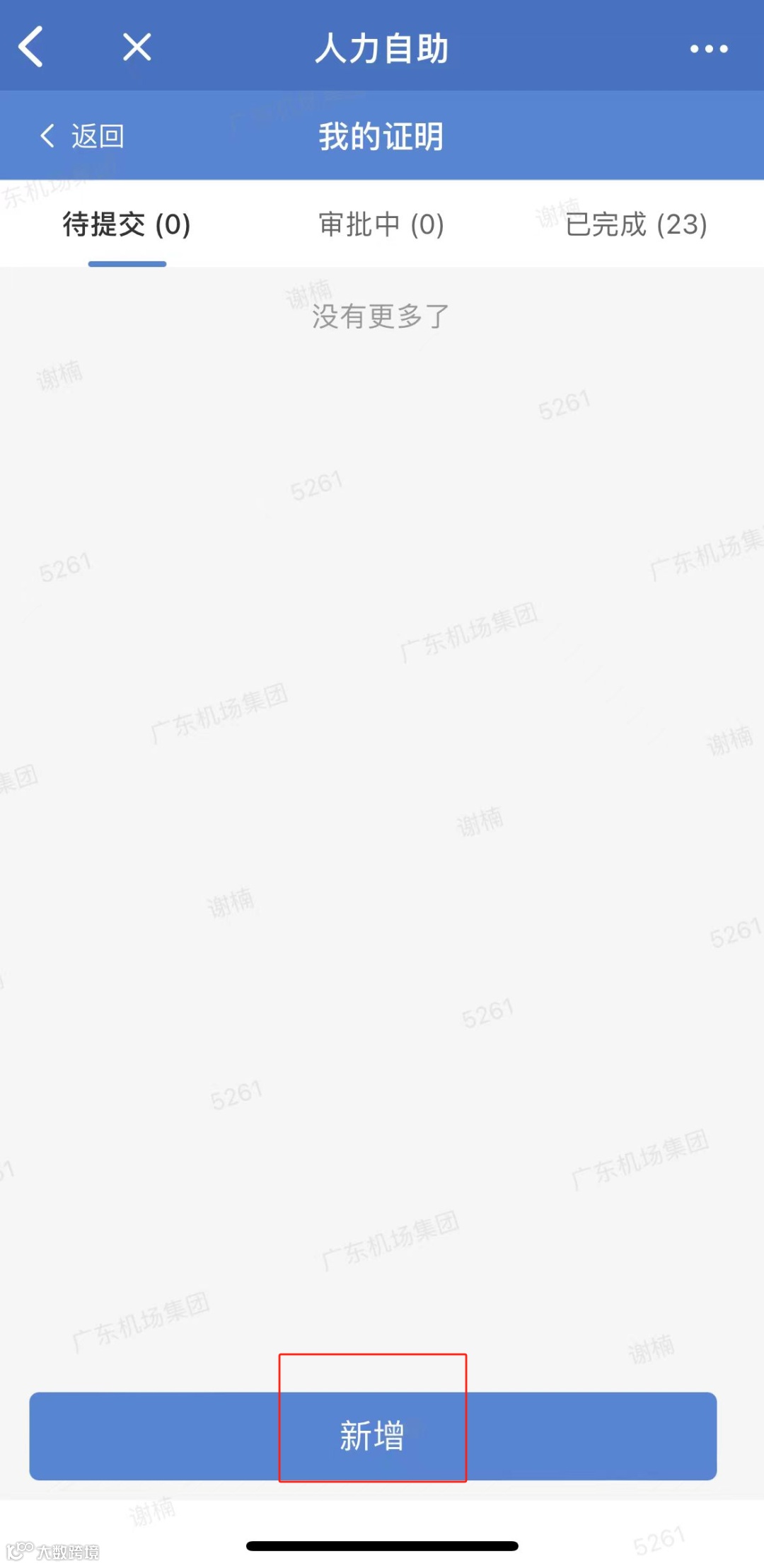 2、在证明申请界面,点击【新增】
