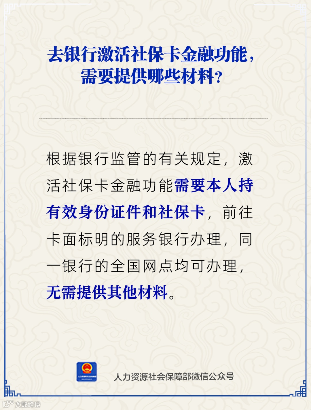 去银行激活社保卡金融功能,需要提供哪些材料?