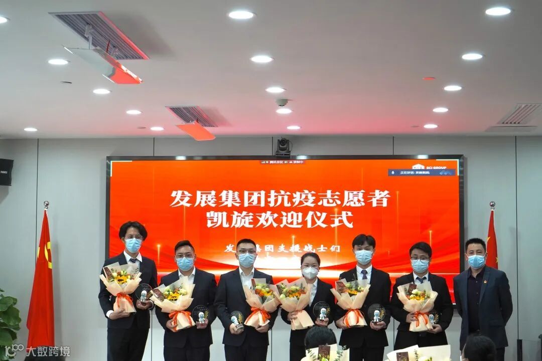 1月6日下午,科学城发展抗疫铁军凯旋欢迎仪式圆满召开,主会场设在科学城集团总部大楼3楼大会议室,各下属公司下设视频分会场。发展集团董事长牛安达,总经理朱海晖,副总经理董延江、刘福英、代煜坤,总工程师刘卫东,各下属公司分管领导,发展集团参加抗疫支援的41位同志参加仪式。