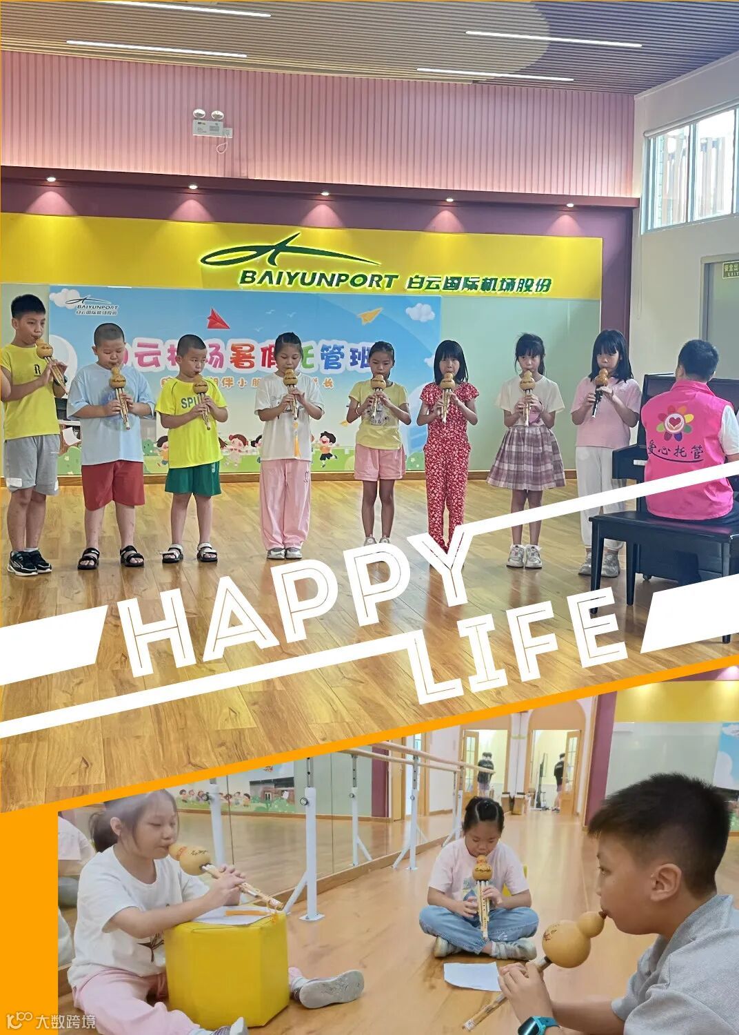 孩子们正在开展趣味活动,老师精心准备了葫芦丝、手工、游戏、球类等课程,绘就孩子们的多彩暑假。