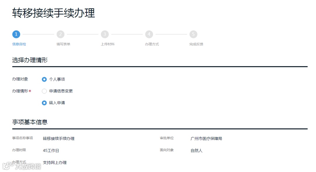 4.填写资料办理业务。(目前国家医保服务平台仅能办理跨省转移接续业务,省内转移接续,请通过广东政务服务网办理)