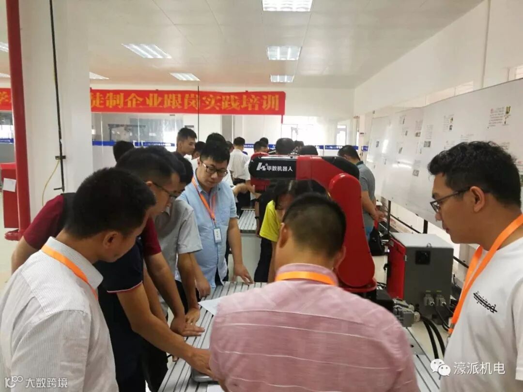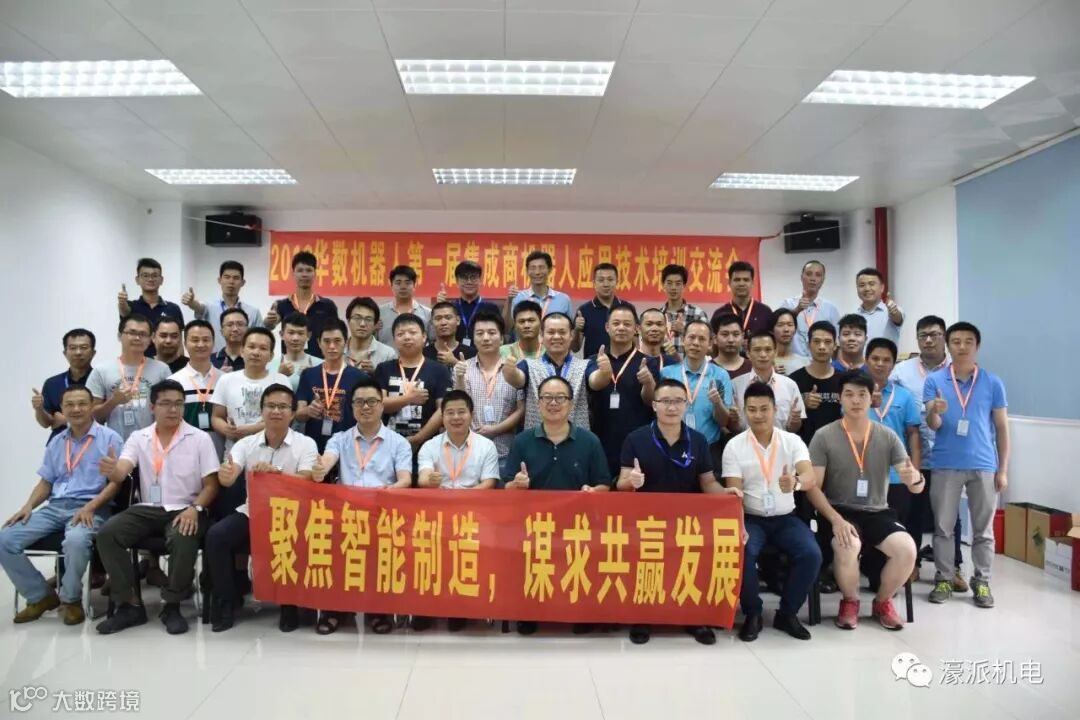 在这样的大趋势下,濠派工程师们与时俱进,不断学习提高技术水平。6月4日濠派唐总亲自带队参与了佛山华数机器人举办的主题为“聚焦智能制造,谋求共赢发展——2018年华数机器人第一届集成商大会暨机器人应用技术培训交流会”。通过此次技术培训交流会,濠派工程师们加深对机器人产品的性能、使用、维修、维护的了解,提高了机器人的应用技术水平。