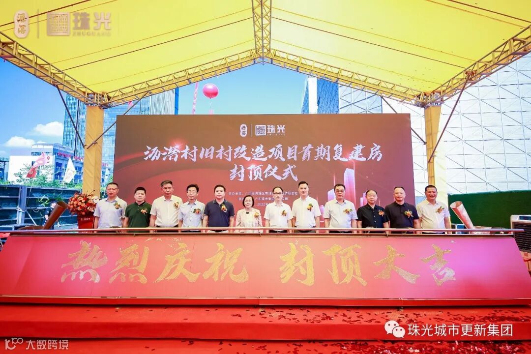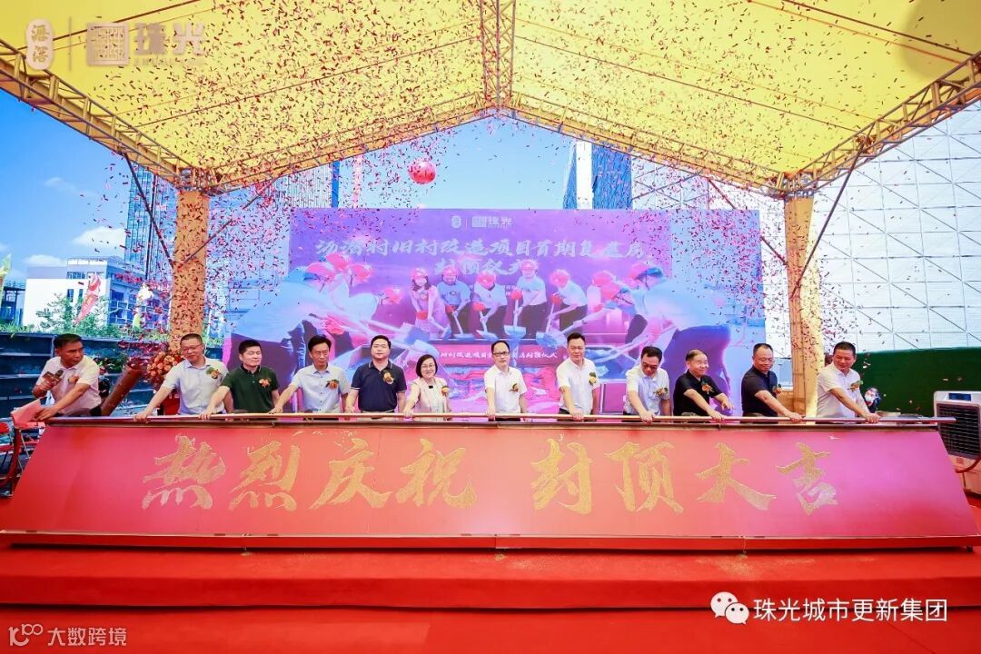 2022年8月2日上午,沥滘村旧村改造项目首期复建房喜封金顶。海珠区住建局、区规资局、南洲街道办事处、沥滘联社等主要领导同合作公司珠光城更集团、施工单位扬迈建设公司、监理单位永信工程管理公司等领导出席了封顶仪式,一同见证和庆祝沥滘旧村改造这具有里程碑意义的重要时刻。