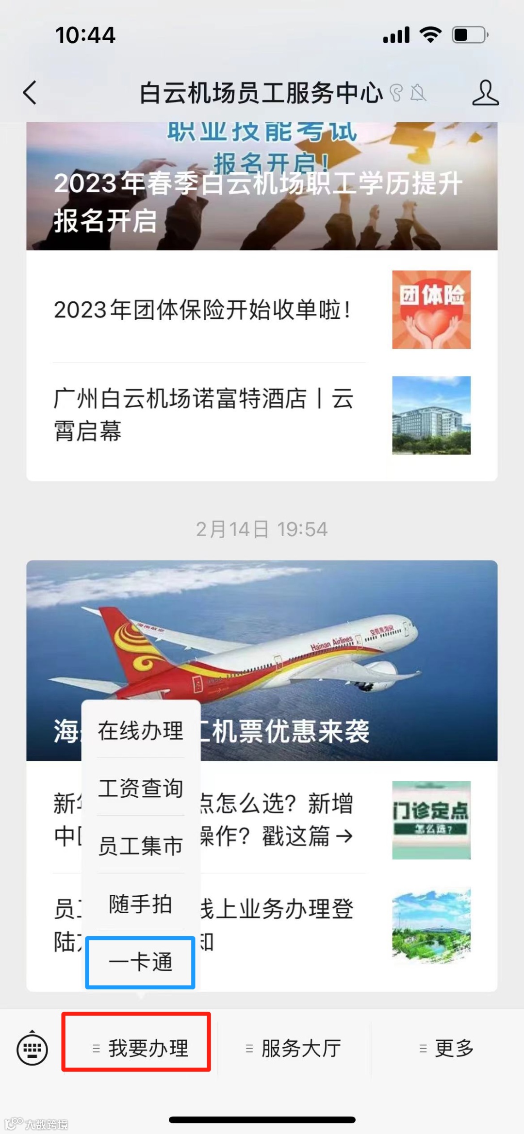 打开“白云机场员工服务中心”微信公众号——点击“我要办理”——点击“一卡通”