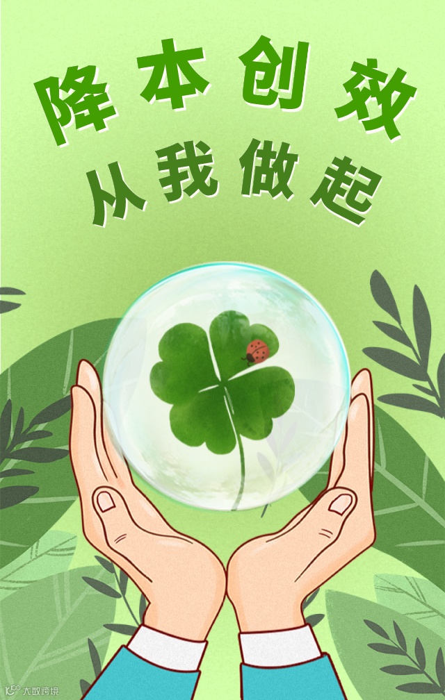 对于企业来说,发展为上,效益为先。效益是企业的生命之源,降本创效是企业永恒的主题。在受疫情影响的特殊时期,降低成本、增加效益,在加强管理、优化生产运营的同时,抓好节能降耗,不断拓展降本创效的广度与深度,才能保证企业稳步长久的发展。让我们携起手来,从我做起,从小事做起,形成“人人讲成本、人人算成本、人人降成本”的良好氛围,用实际行动谱写降本创效的乐章!