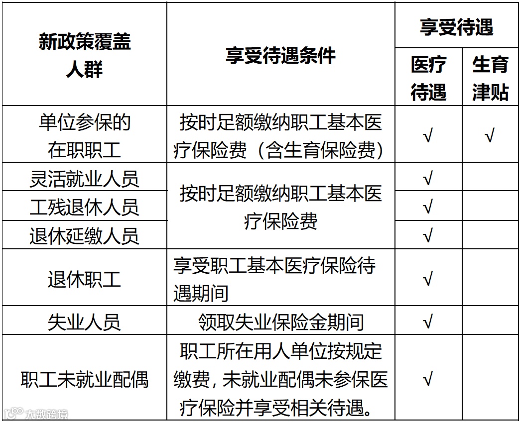 答:根据《广东省职工生育保险规定》,单位参保的在职职工、灵活就业人员、工残退休人员等7类人员可享受生育保险待遇。需要留意的是,生育保险待遇包括生育医疗费用和生育津贴待遇,除单位参保的在职职工外,其他6类人员仅可享受生育医疗费用待遇。具体如下: