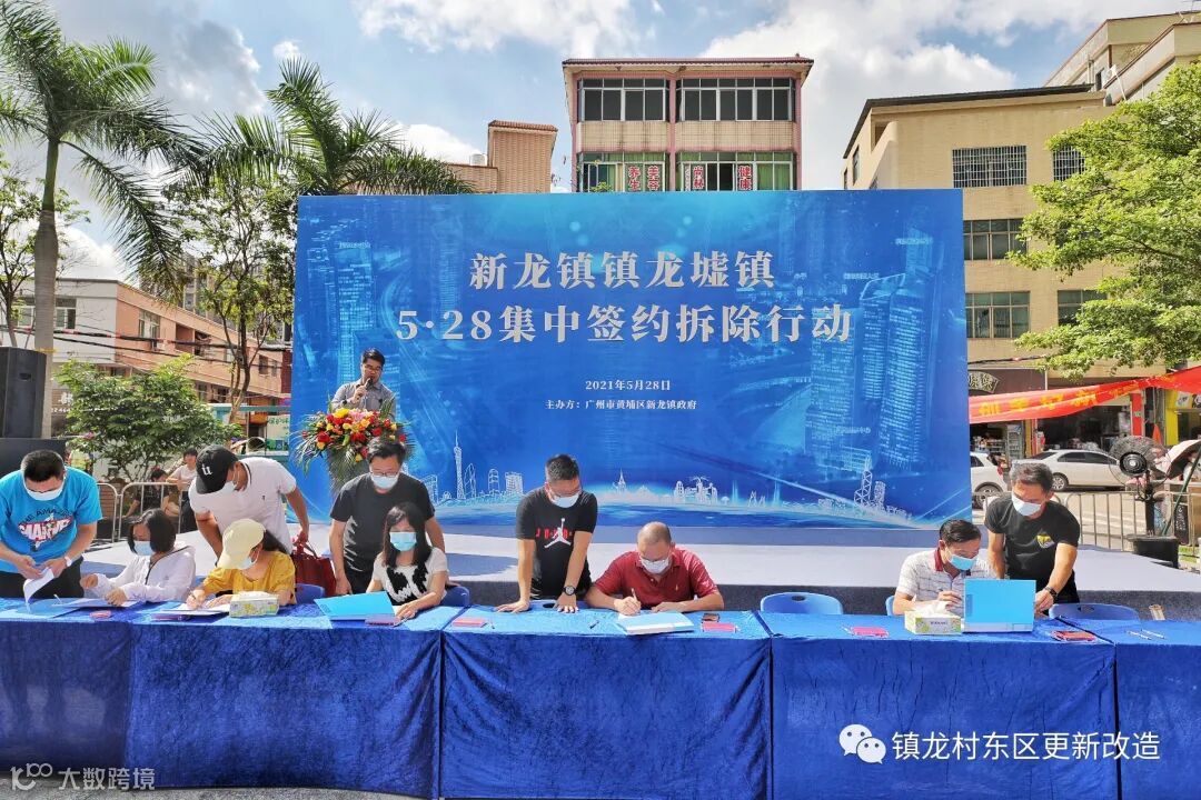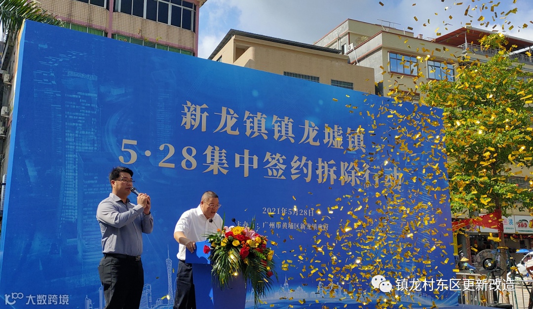 镇龙项目从2020年5月启动签约工作至今,整村签约率屡报佳绩。目前,镇龙村东区改造更新项目于新市场街心公园举行“镇龙墟镇5·28集中签约拆除行动”,意味着镇龙村的旧改进程进入了新阶段。