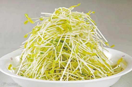 就是绿豆的芽,为豆科植物绿豆的种子发出的嫩芽。《本草纲目》中曾提过:“诸豆生芽、皆腥韧不堪,惟此豆之芽,白美独异,今人视为寻常,而古人未知者也。”
